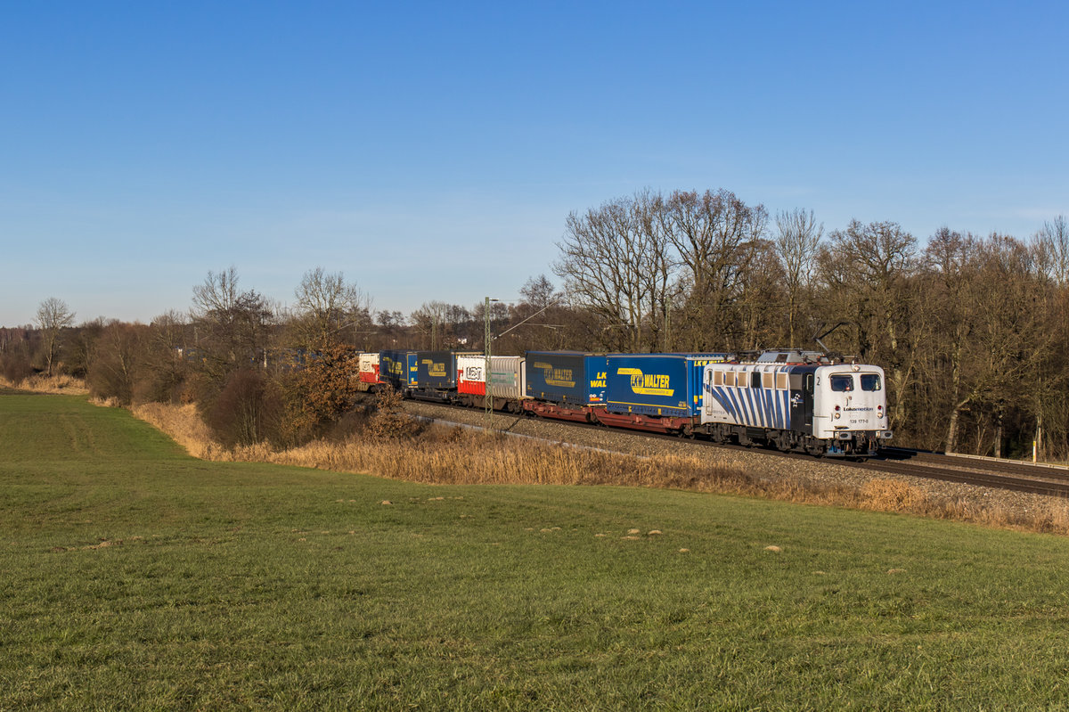 139 177 von Lokomotion mit einem KLV bei Hilperting, aufgenommen am 10. Dezember 2016.
