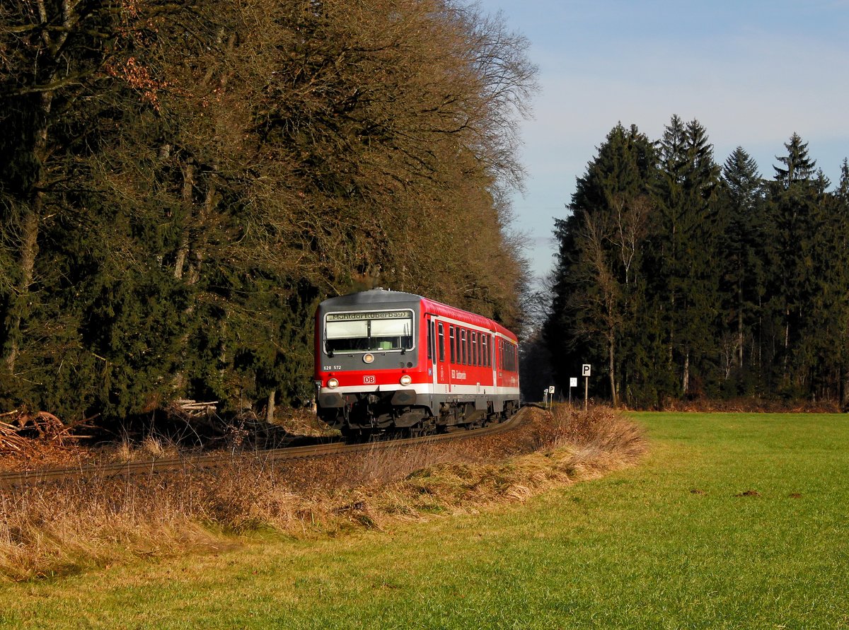 Mit etwas Glück,erwischte ich im ganz kurzen Zeitfenster,wo die Sonne in der kürzesten Jahreszeit durch die dichten Bäume bei Küb noch durchkommt den G-54627 mit 1144.101+1116 am 10.12.16