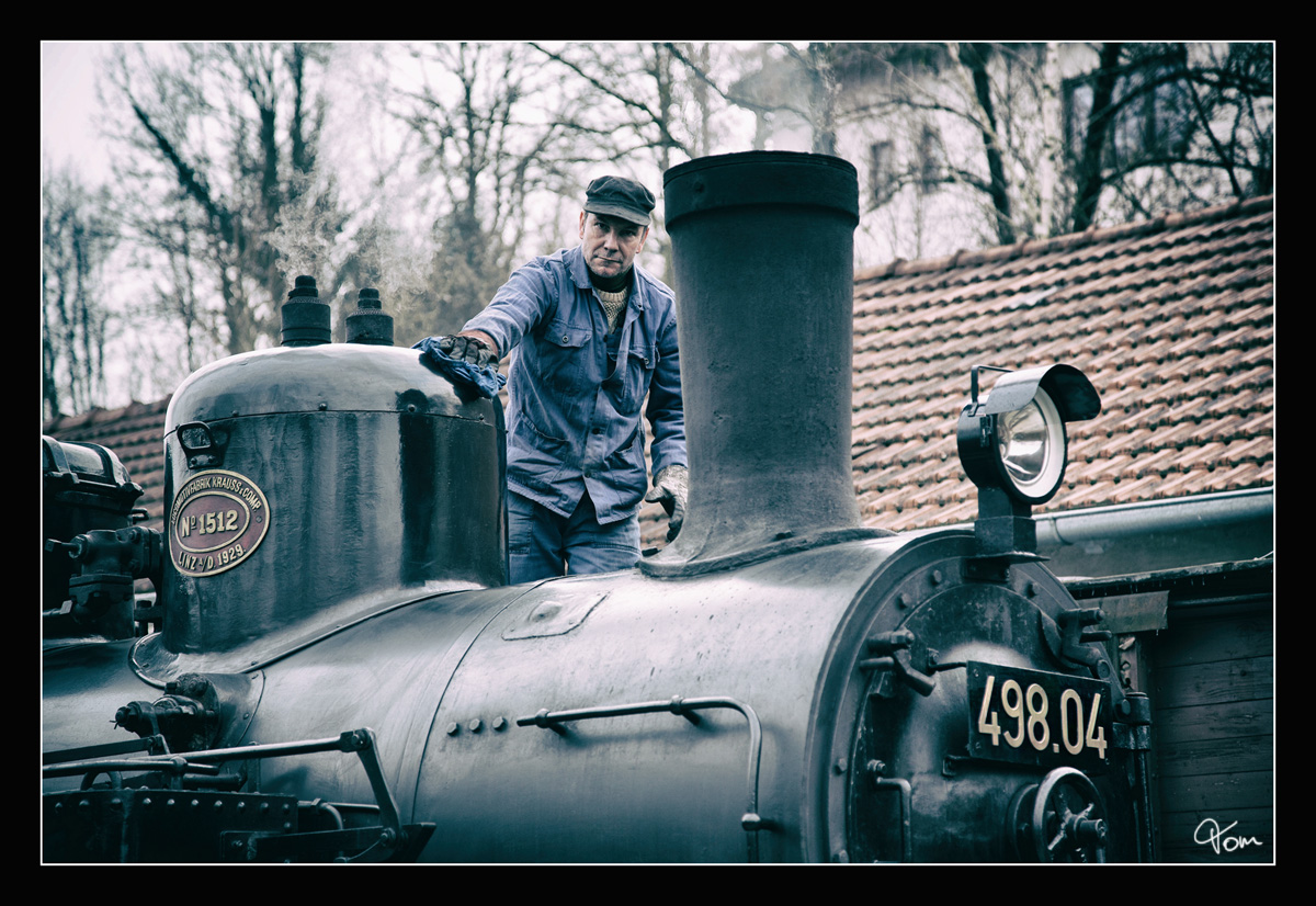 Lokpflege bei der Dampflok 498.04 im Bahnhof Steyr Lokalbahnhof 8.12.2016