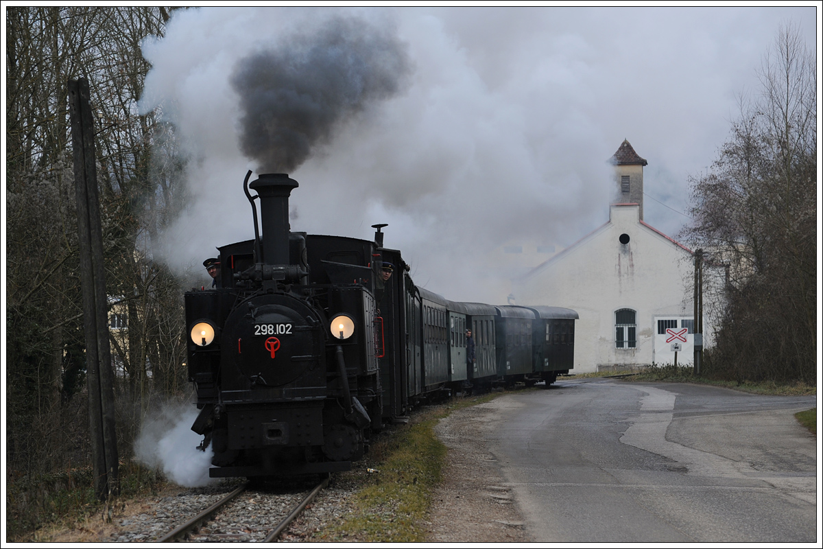 298.102 der ÖGEG auf der Steyrtalbahn am 8.12.2016 zw. Unterhimmel-Christkindl und Schloss Rosenegg aufgenommen.