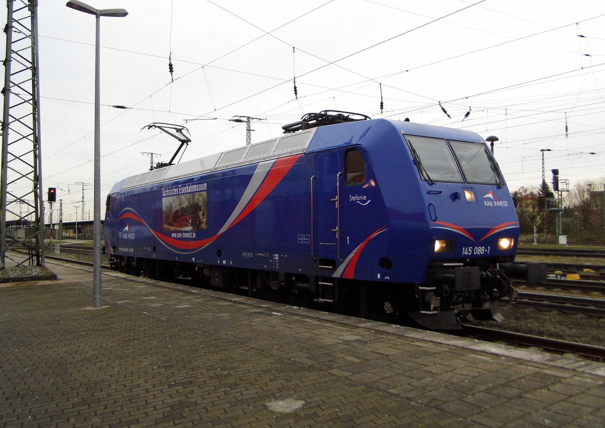Am 08.12.2016 die 145 088-1 von der HSL Logistik (SRI Rail Invest ) in Stendal.