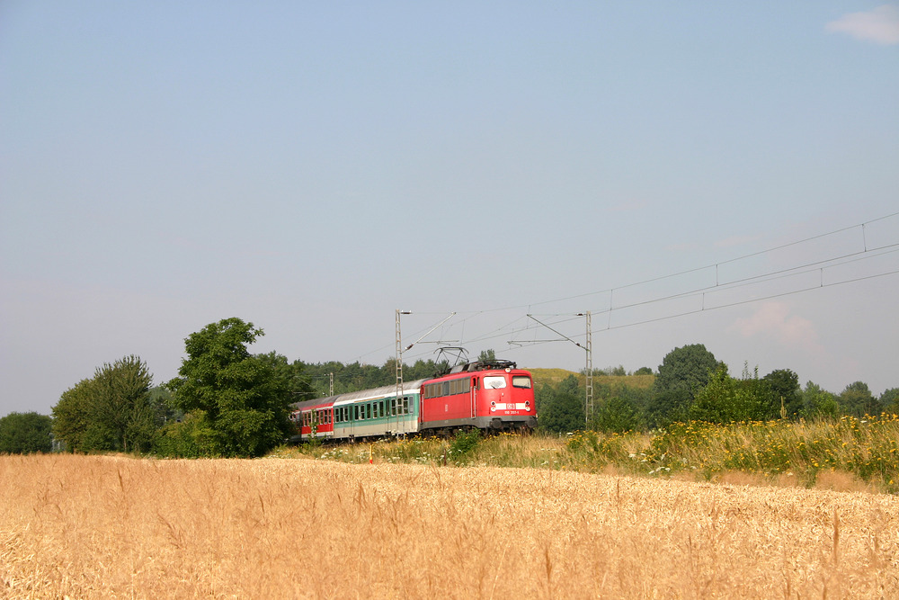 110 463 mit einem Verstärker-RE am 19. Juli 2011 im Bahnhof Düren.