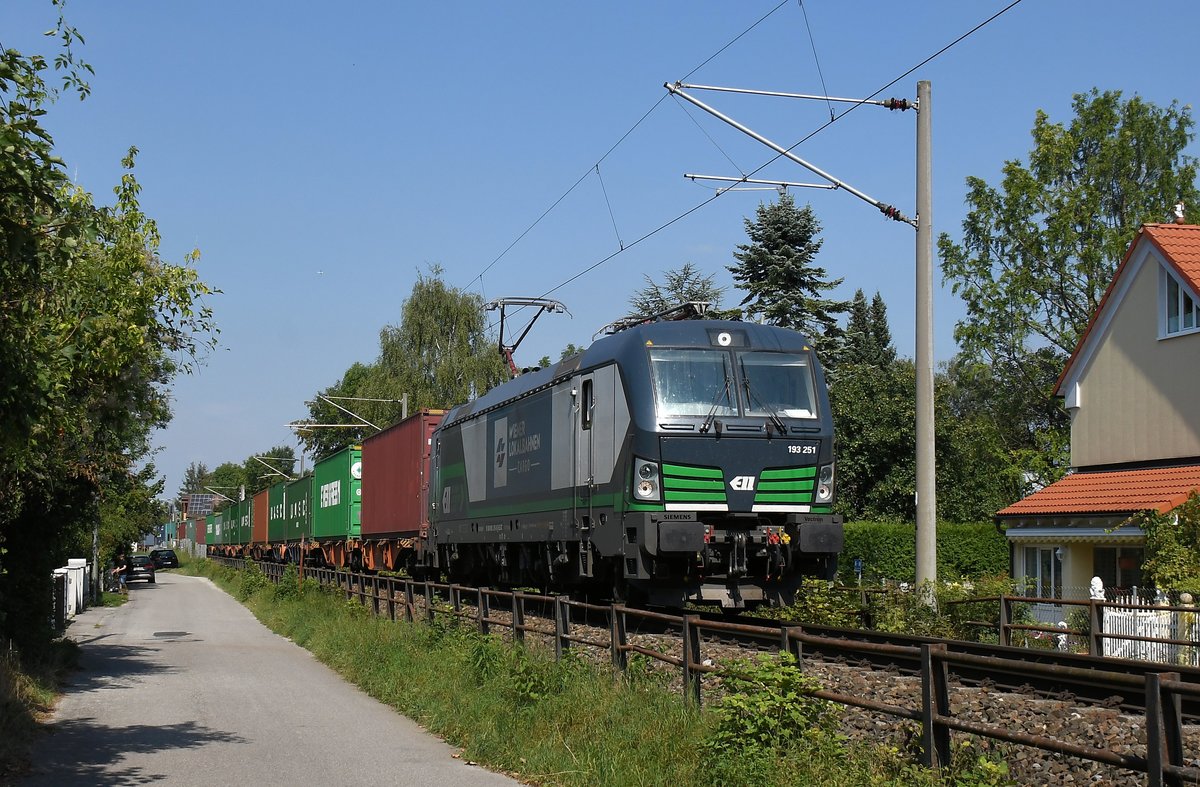 193 850 mit Containerzug in Fahrtrichtung Süden. Aufgenommen zwischen Friedland(HAN) und Eichenberg am 31.05.2015.