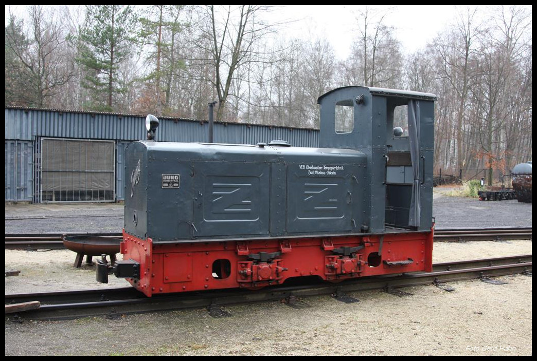 Jung Feldbahn Lok Nr. 8342, Baujahr 1939, der Wald Eisenbahn Muskau am 9.12.2016 im Freigelände in Weißwasser.