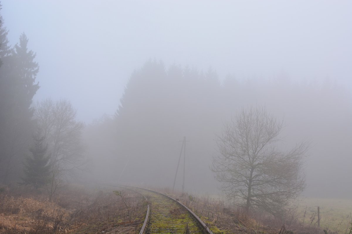 Eine brissante Mischung aus Raureif, Nebelschwaden und die tiefstehende Sonne machten das Szenario in Raeren an der ehemaligen Vennbahn Bildreif! Und Nein, es sind nicht die Heiligen Drei Könige, sondern drei Mädels die gerade des Weges entlang kommen. Datiert vom 20 .Dez.2016, Raeren,Belgien.