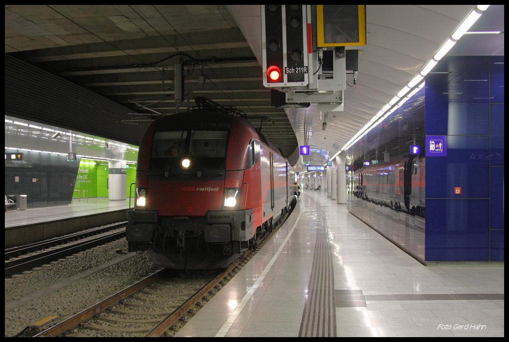 Railjet mit Taurus 1116.219 am 16.10.2016 um 7.56 Uhr in Wien - Flughafen nach München HBF.