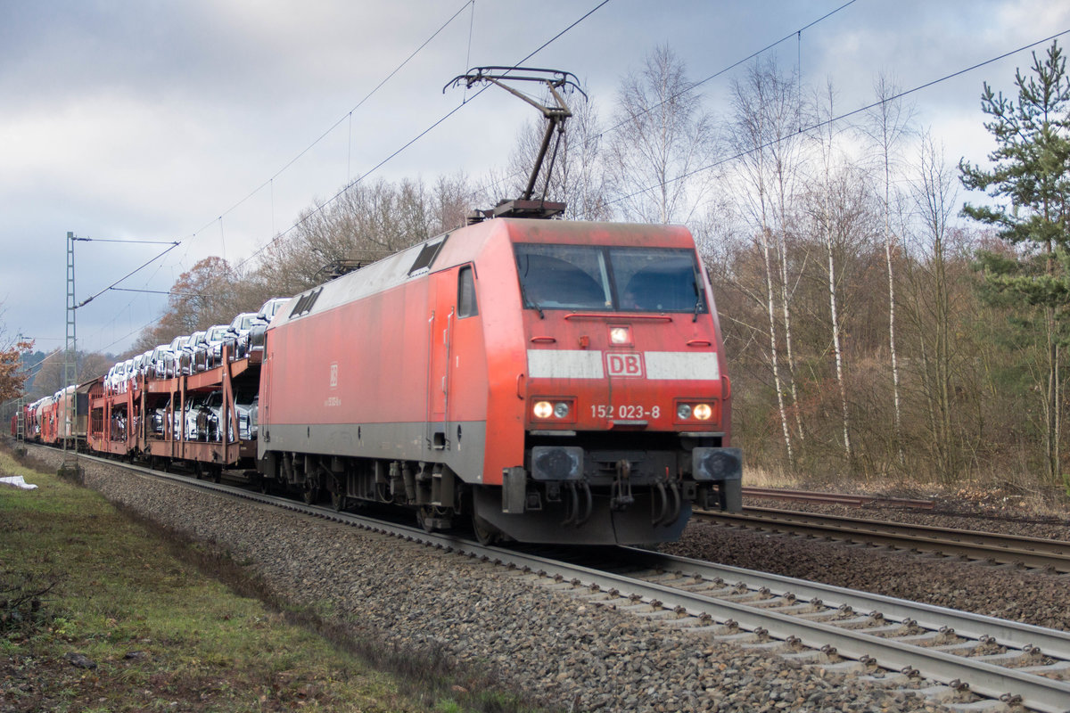 152 023-8 ist am 15.12.16 mit einen gemischten Güterzug in Richtung Süden unterwegs,gesehen bei Vollmerz.