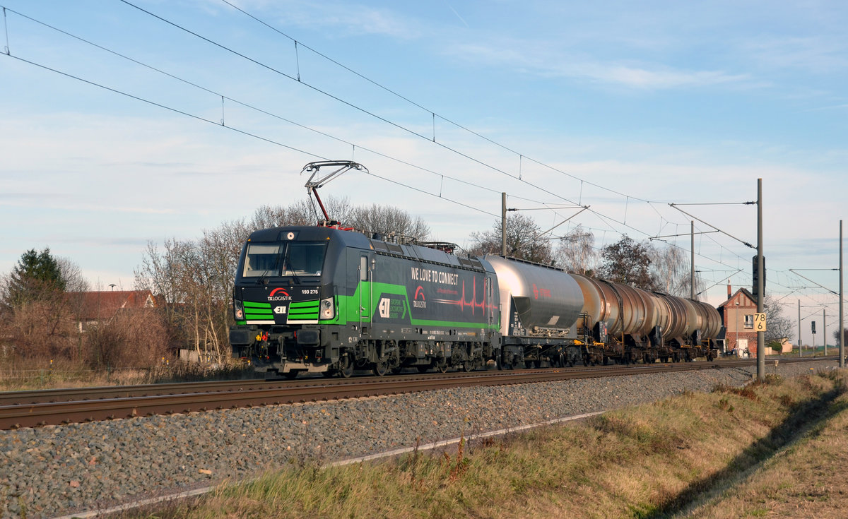 Am 28.12.2016 war die Moselstrecke wegen Tunnelarbeiten gesperrt. Dadurch musste der  Erzbomber  aus Maasvlakte den Umweg durch den Pfälzer Wald nehmen. Durch die Steigungen zwischen Neustadt/Weinstraße und Kaiserslautern war eine dritte 189er als Schublok erforderlich, diese Arbeit leistete 189 044. Zuglok war 189 047, als Vorspann lief 189 042. Bahnstrecke 3230 Saarbrücken - Karthaus beim Kraftwerk Ensdorf.