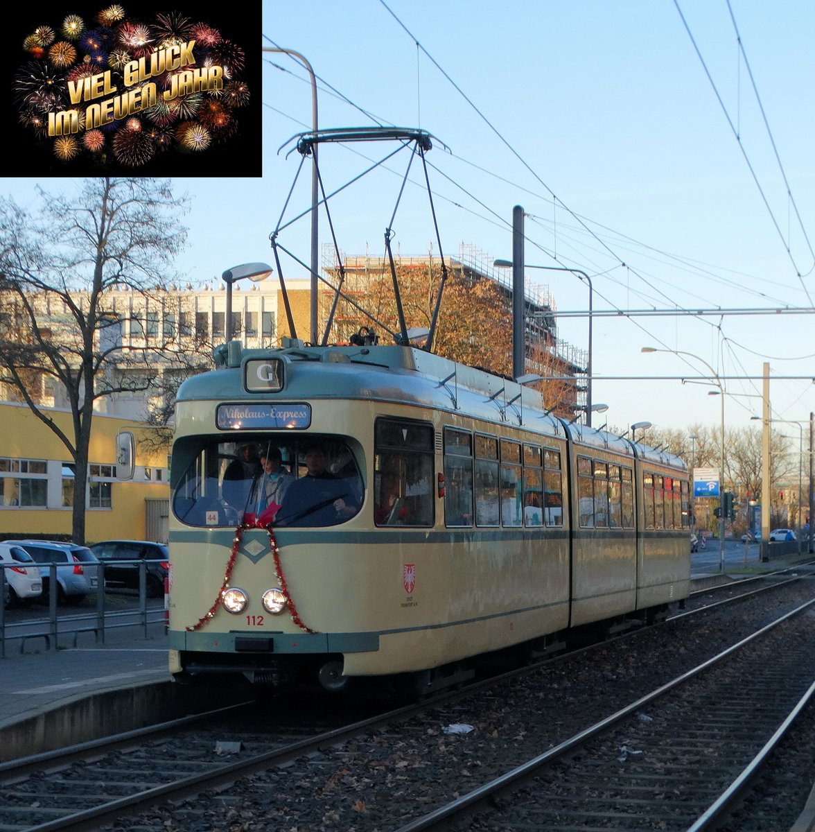 Mit diesen Bild wünsche ich allen Bahnbilder.de Usern und Besuchern einen guten Rutsch ins neue Jahr. Hier zu sehen VGF Düwag N-Wagen 112 am 03.12.16 in Frankfurt am Main