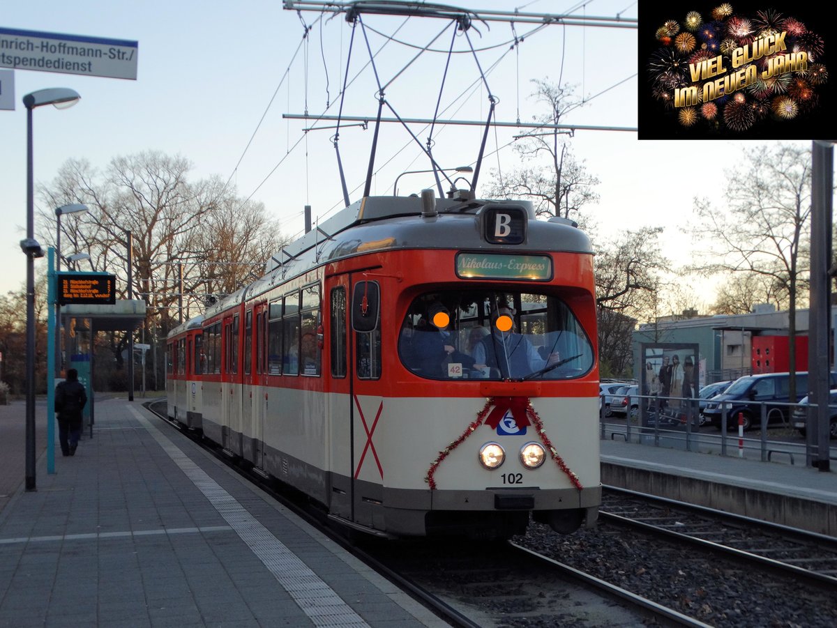 Mit diesen Bild wünsche ich allen Bahnbilder.de Usern und Besuchern einen guten Rutsch ins neue Jahr. Hier zu sehen VGF Düwag M-Wagen 102 am 03.12.16 in Frankfurt am Main