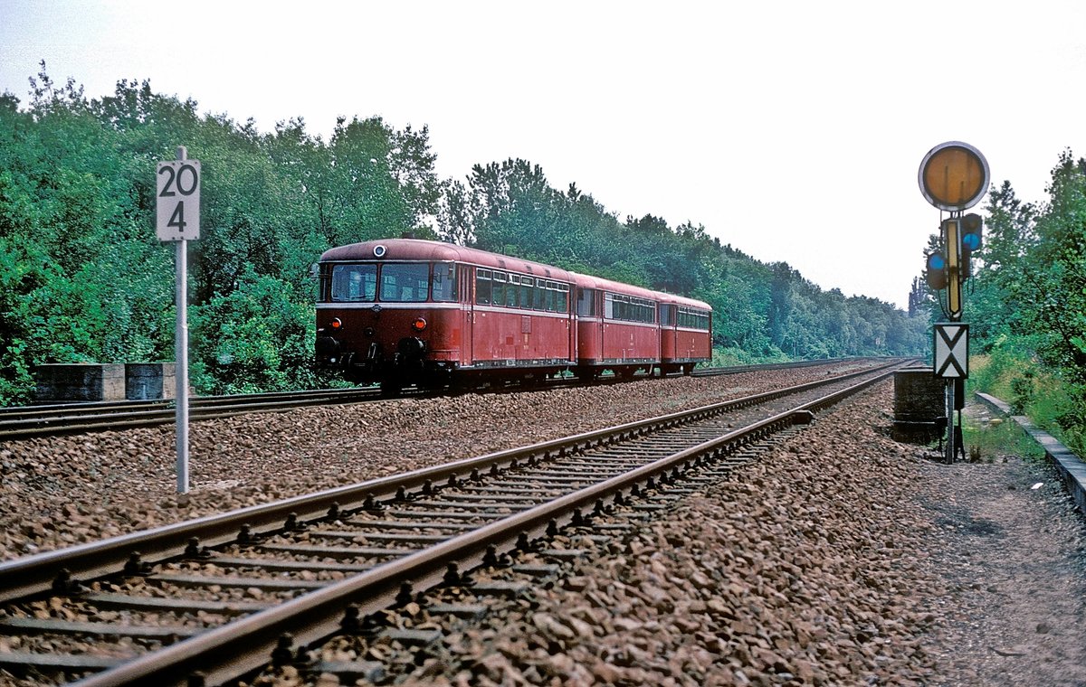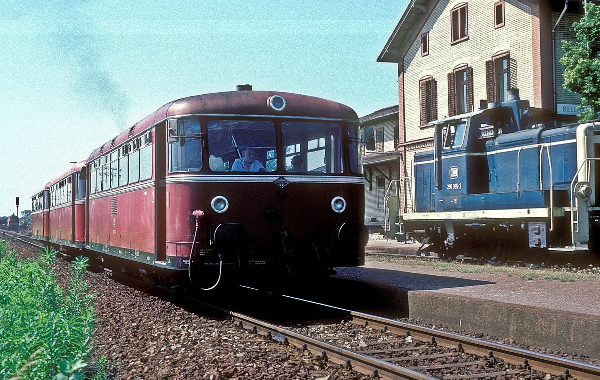 Gegenlichtaufnahme eines Solo-RS1 der SWEG: