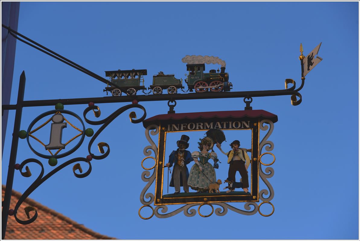 Spezialgeschäfte und Restaurants in Appenzell machen durch kunstvolle Schilder auf sich aufmerkasam und die Touristeninfo hat sich gleich die Appenzeller Bahnen zum Vorbild genommen. (02.12.2016)