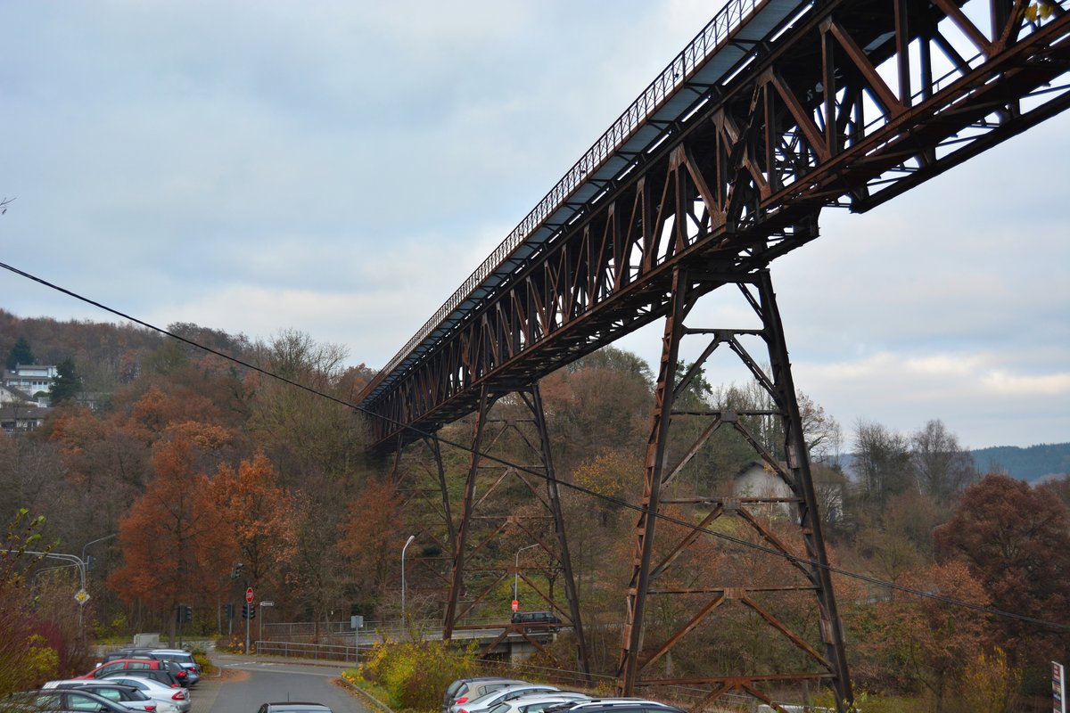 Blick auf die 1906 errichtete Hülsbachtalbrücke in Westerburg. Hier führte bis zum 31. Mai 1981 die Westerwaldquerbahn Herborn - Montabauer drüber. Heute ruht die Strecke. Westerburg 26.11.2016