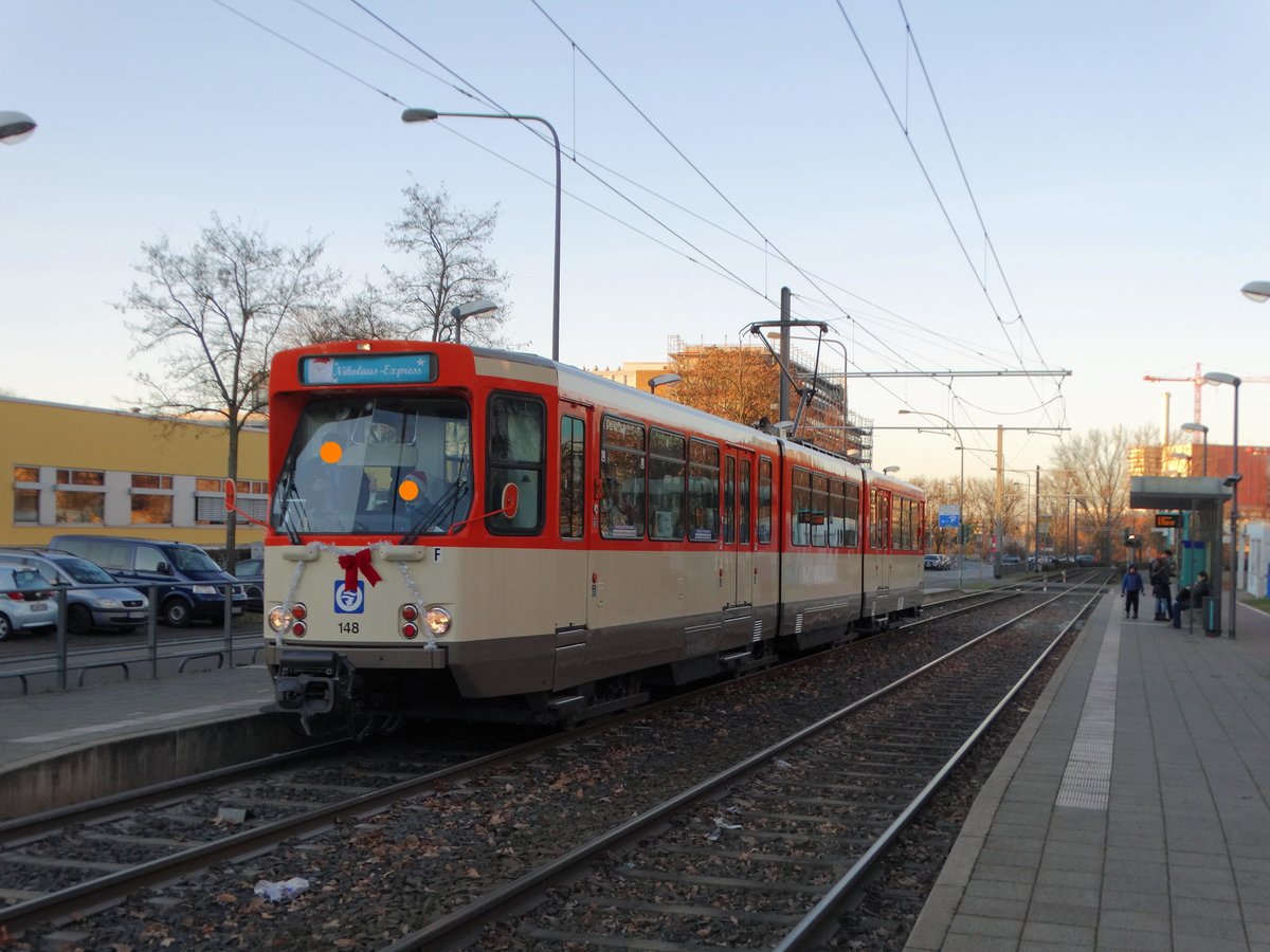 VGF Düwag Pt Wagen 148 als Nikolaus Express am 03.12.16 in Frankfurt am Main Blutspendedienst