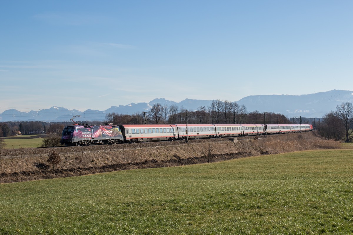 1116 180 "Eurovision Song Contest" mit dem EC 113 am 12. Februar 2016 bei Großkarolinenfeld.