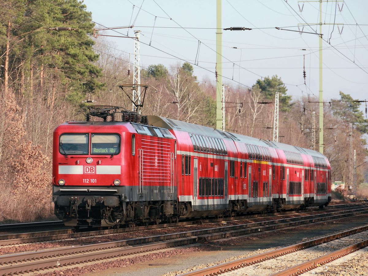 112 101 mit einem RE 5 nach Rostock am 13. Februar 2016 auf dem Südlichen Berliner Außenring bei Diedersdorf.