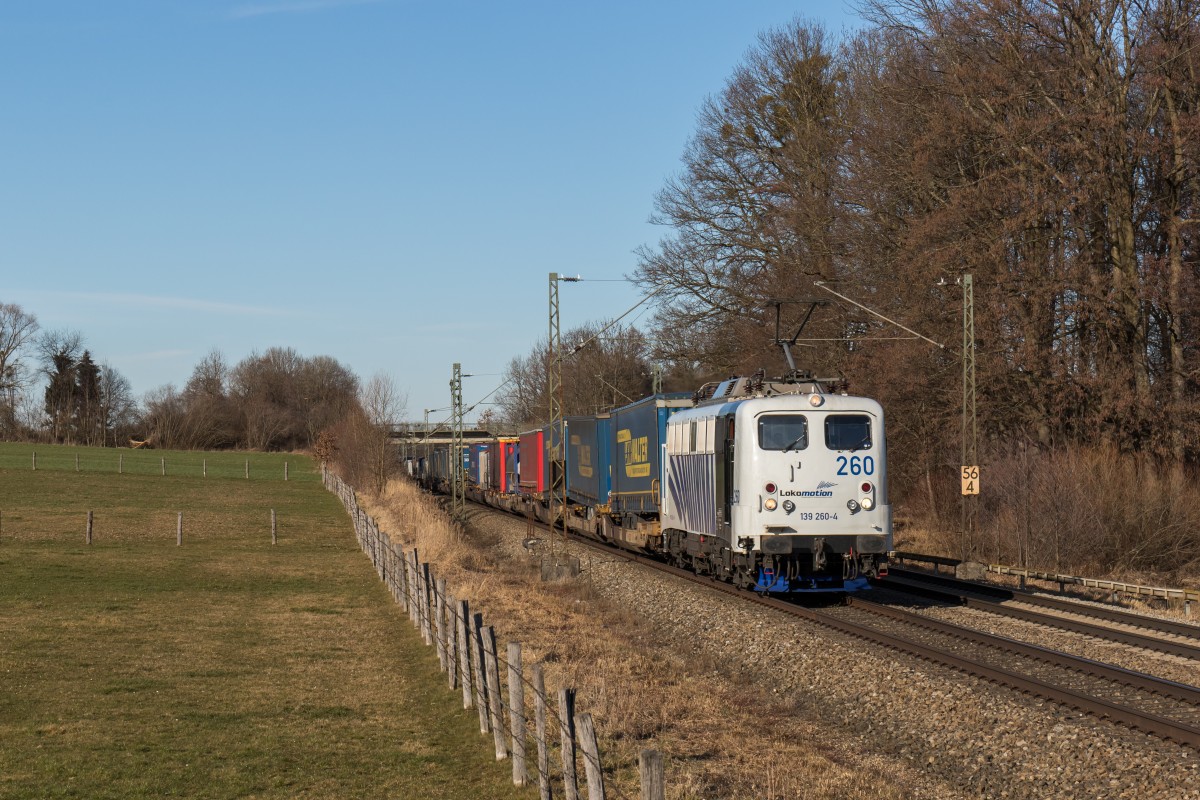 139 260 von Lokomotion mit dem 43115 am 12. Februar 2016 bei Großkarolinenfeld.