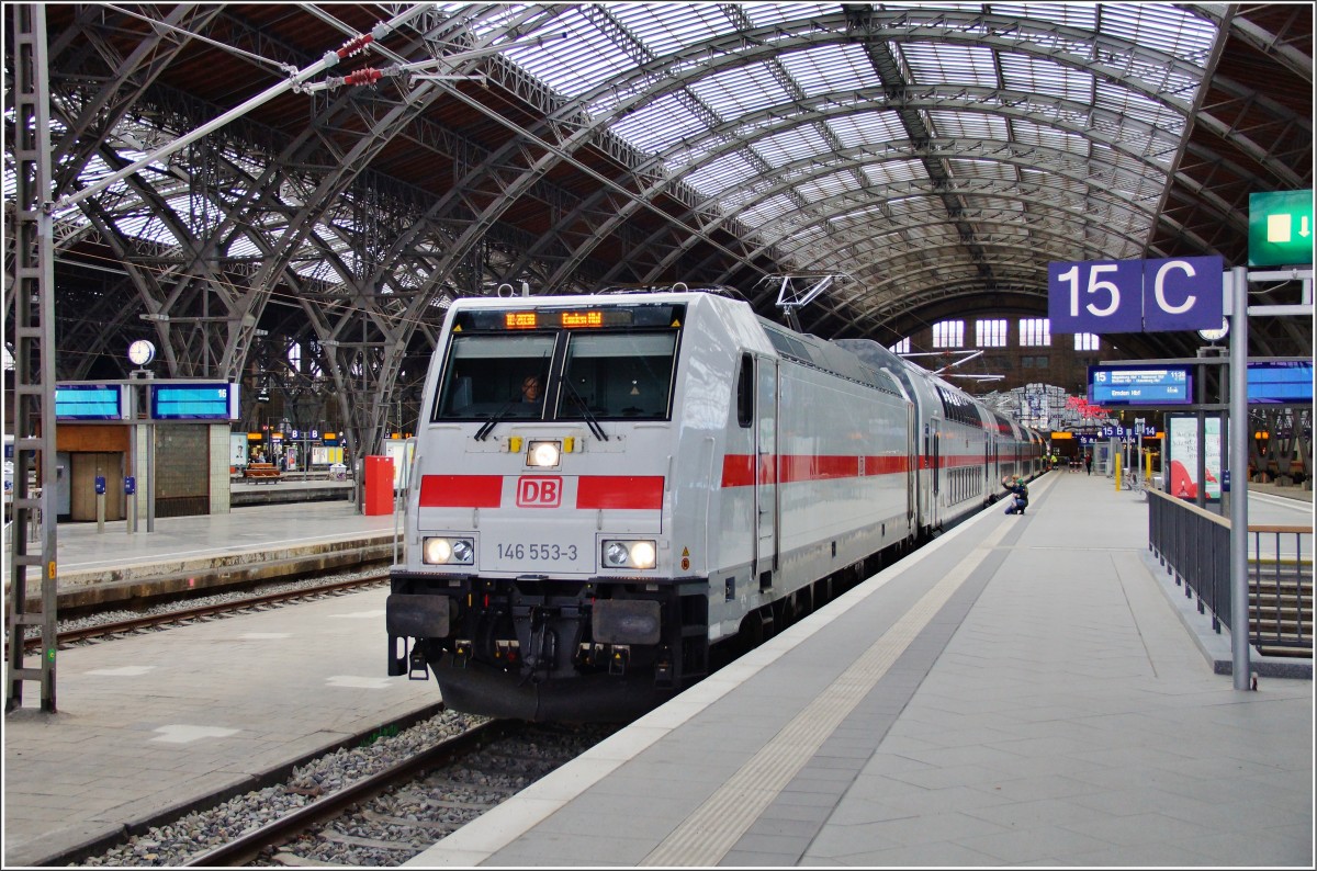 146 553-3 steht am 11.02.16 als IC 2430 nach Emden abfahrbereit gesehen im Leipziger Hbf.