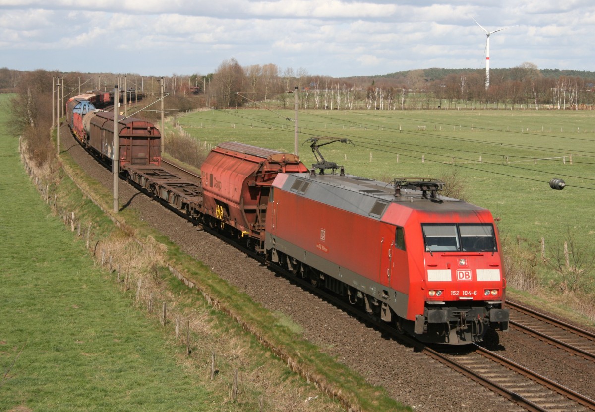 152 104 mit EZ 51451 (Maschen Rbf–Seelze Rbf) am 13.04.2015 zwischen Maschen Rbf und Jesteburg