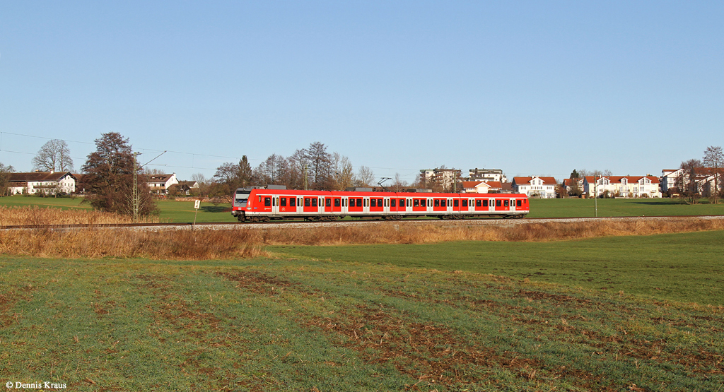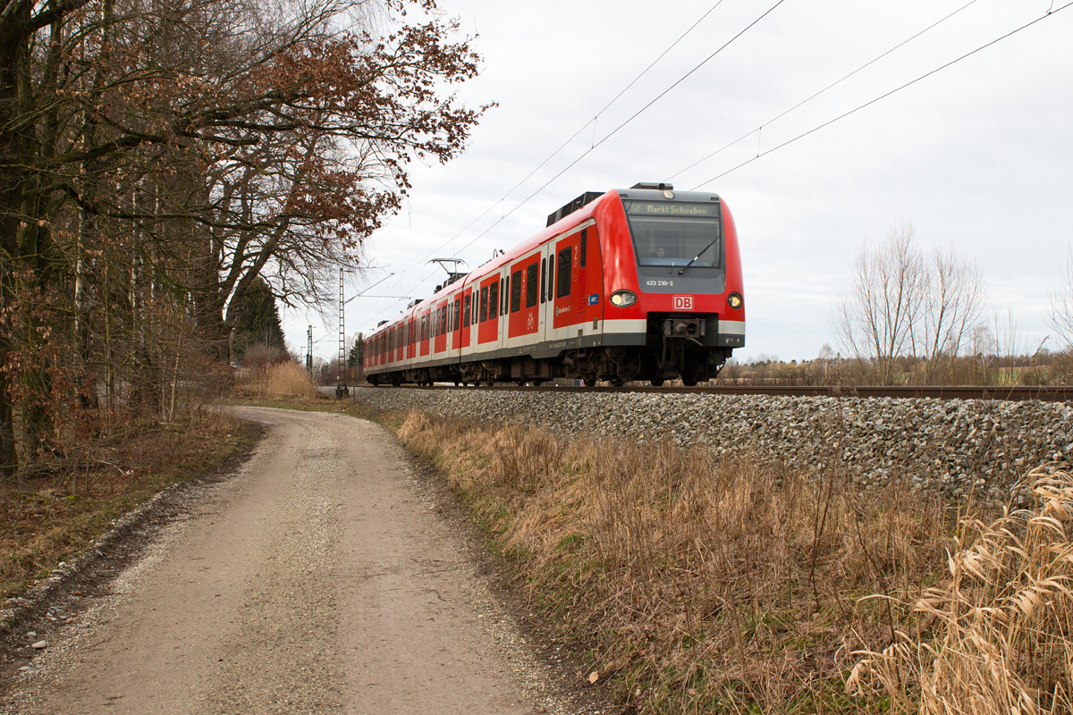 423 230-2 als S2 nach Markt Schwaben wurde am 14.02.16 am Rande von Poing fotografiert.