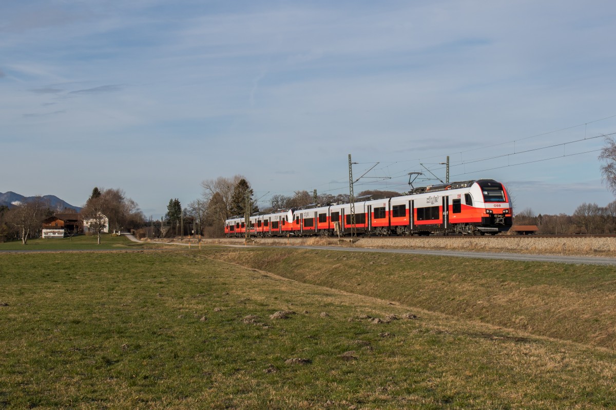 4024.130 "Mein Karrierezug in die Zukunft", am 13.02.2016 unterwegs mit dem Schnellbahnzug 21038 von Wien FJB nach St. Pölten Hbf. zwischen Zeiselmauer-Königstetten und Muckendorf-Wipfing.