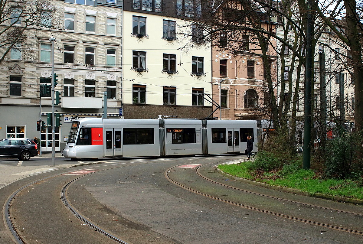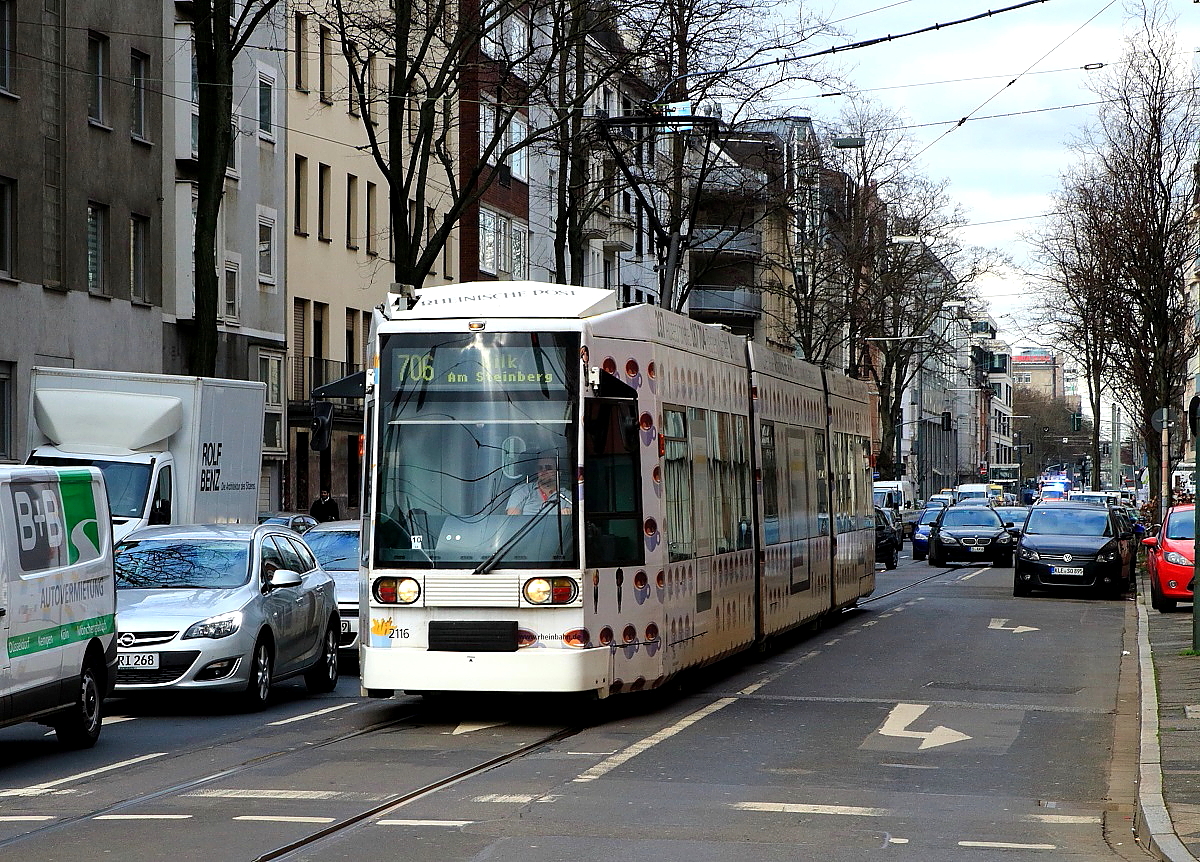 Am 12.02.2016 ist der NF8 2116 auf der Elisabethstraße als Linie 706 zwischen Kirchplatz und Bilker Bahnhof unterwegs