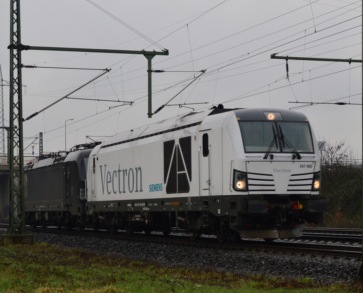 D. und E.Vectron auf Ausflug ohne Zug.....Siemes 247 902 und 193 862 auf der Güterzugstrecke zwischen Duisburg Entenfang und Düsseldorf Rath in Lintorf.14.2.2016