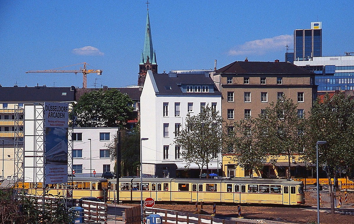 Während des Baus der Wehrhahn-Linie wurde die Streckenführung der Straßenbahnen im Bereich des Bilker Bahnhofes merhmals geändert. 2008 bot sich dieser Blick vom Bahnsteig des S-Bahnhofes Düsseldorf-Bilk.