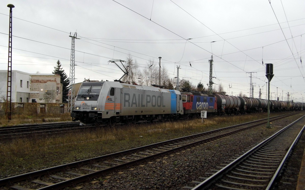 Am 04.02.2016 kam die 185 671-5 von der HSL Logistik (Railpool) aus Richtung Salzwedel nach Stendal und fuhr weiter in Richtung Magdeburg .