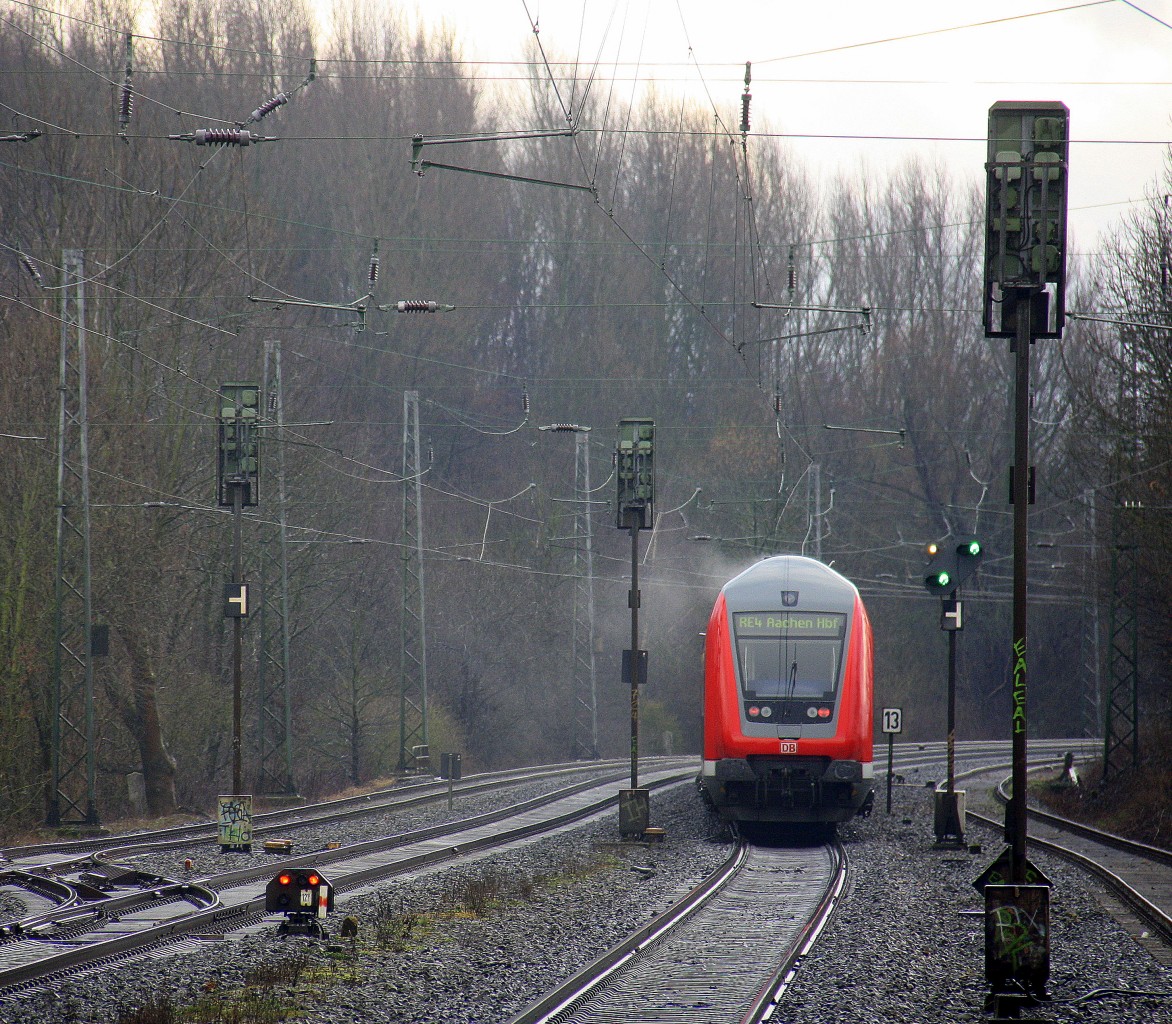 Ein RE4 von Aachen-Hbf nach Dortmund-Hbf kommt aus Richtung Aachen-West,Laurensberg,Richterich, und fährt durch Kohlscheid und fährt in Richtung Herzogenrath,Mönchengladbach,Neuss.