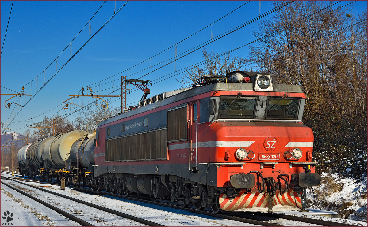 SŽ 363-020 zieht Kesselzug durch Maribor-Tabor Richtung Tezno VBF. /7.1.2016