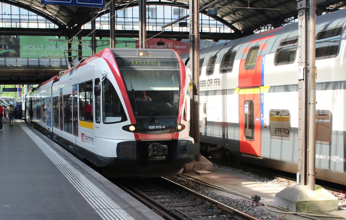 SBB RABe 520 015-4 (Stadler GTW) als Regionalzug nach Lenzburg Luzern Bahnhof am 4. Juli 2015.