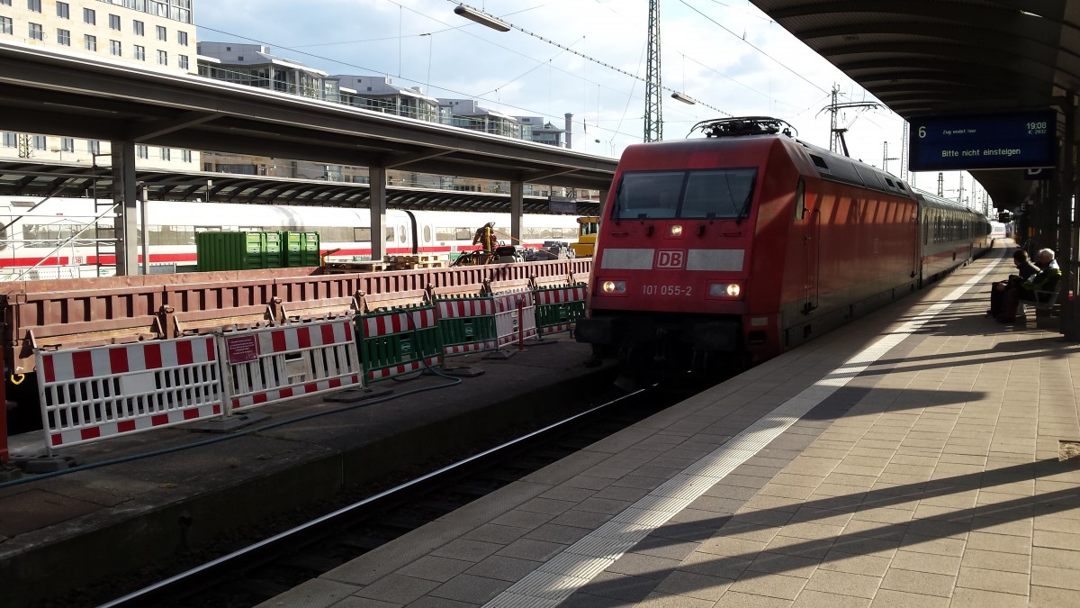 101 133-7 am 04.10.2014 kurz nachdem kuppeln an den Wagenpark des EC 8 (Zürich HB - Hamburg Altona) in Basel Bad Bf. An diesem Wochende fuhren die EuroCitys mit den Schweizer Re 460 ohne Halt an Basel SBB direkt nach Basel Bad Bf vorbei.