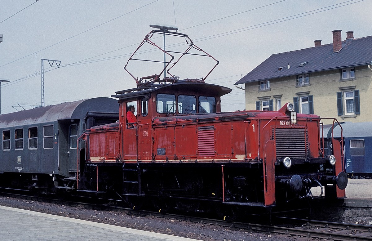 218 265-7 steht im April 1994 abfahrbereit im Bahnhof Bad Harzburg, rechts steht ein 614