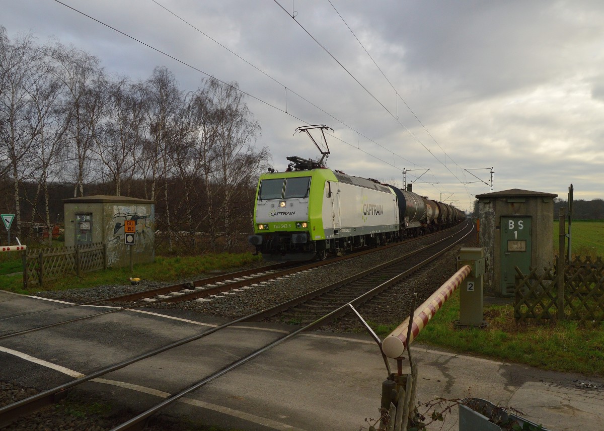 185 542-8 von Captrain mit einem Gemischtwarenladen am Haken bei Kaarst Broicherseite am 19.12.2015