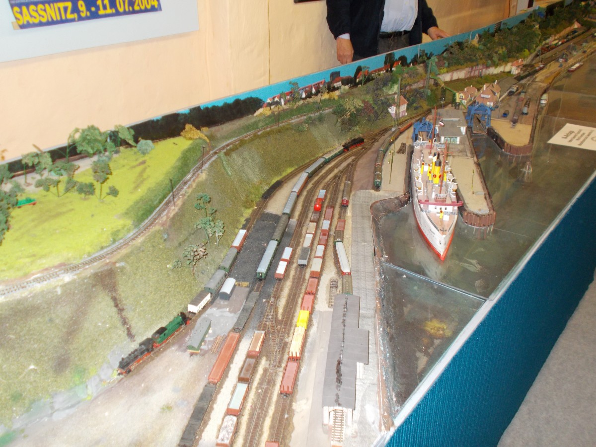 In Spur N nachgebaut der alte Bahnhof Sassnitz Hafen mit all seinen Gleisen.Aufnahme bei der Ausstellung in Sassnitz am 27.Dezember 2015.