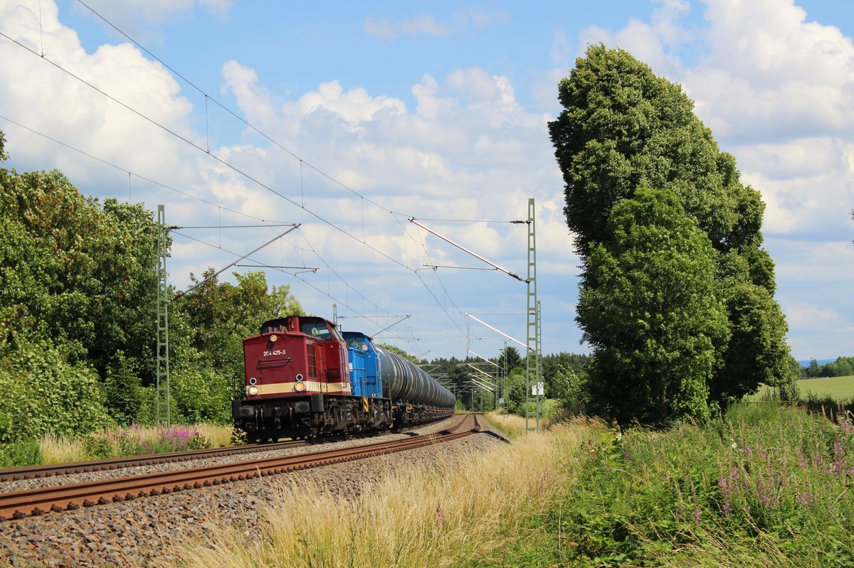 204 425-3 und 204 022-2 (PRESS) zu sehen am 01.07.16 mit einem Kesselzug an der Schöpsdrehe bei Plauen/V.