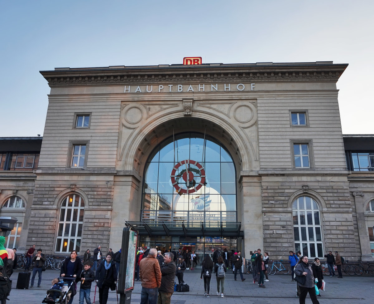 Blick auf den Haupteingang des Mannheimer Hauptbahnhofs am 18.3.2016.