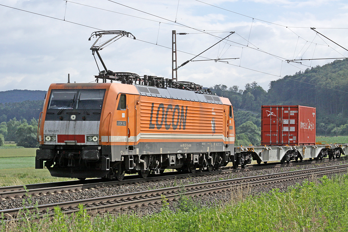 Locon E189 821 01.07.2016 10:05 nördlich von Salzderhelden am BÜ75,1 in Richtung Göttingen