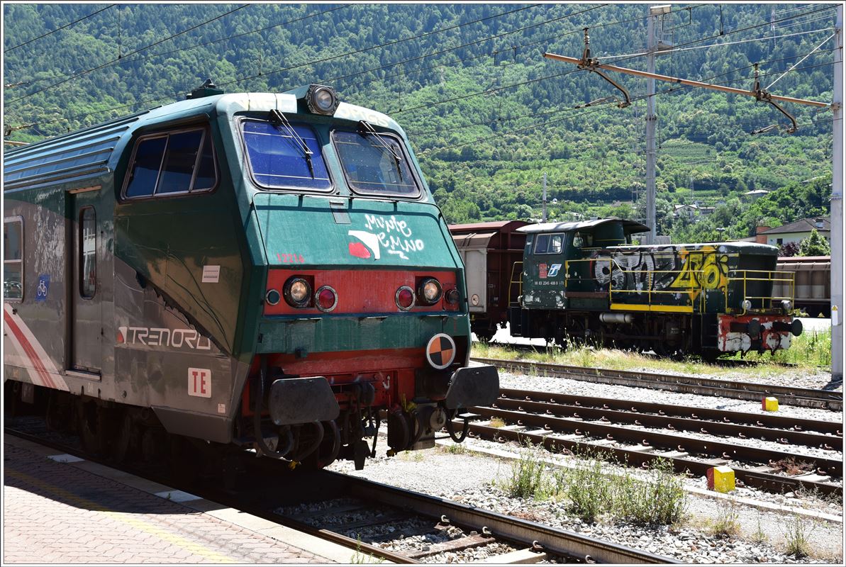 Ge 2/2 162 ist auch nicht eben eine Schönheit, aber doch um einiges älter als ihr italienischer Vertreter. Tirano FR. (28.06.2016)