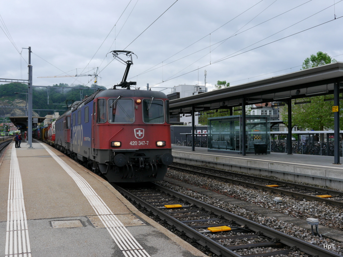 SBB - 420 347-7 mit 620 ??? vor Güterzug bei der Durchfahrt im Bahnhof Burgdorf am 05.06.2016