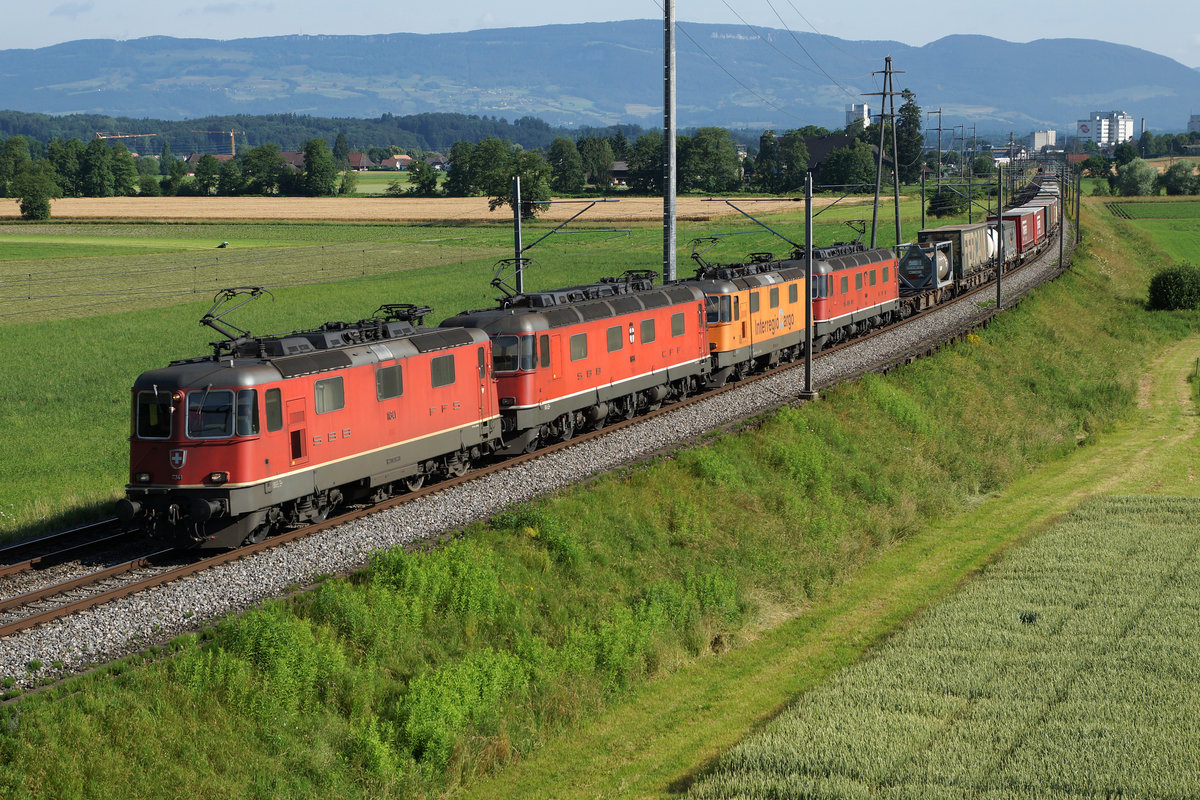 SBB: Dank Fotografenglück konnte am Morgen des 28. Juni 2016 ein Güterzug mit einer Re 20/20 bei Betthausen verewigt werden. Erkennbar ist die Re 6/6 11664 "KÖNIZ".