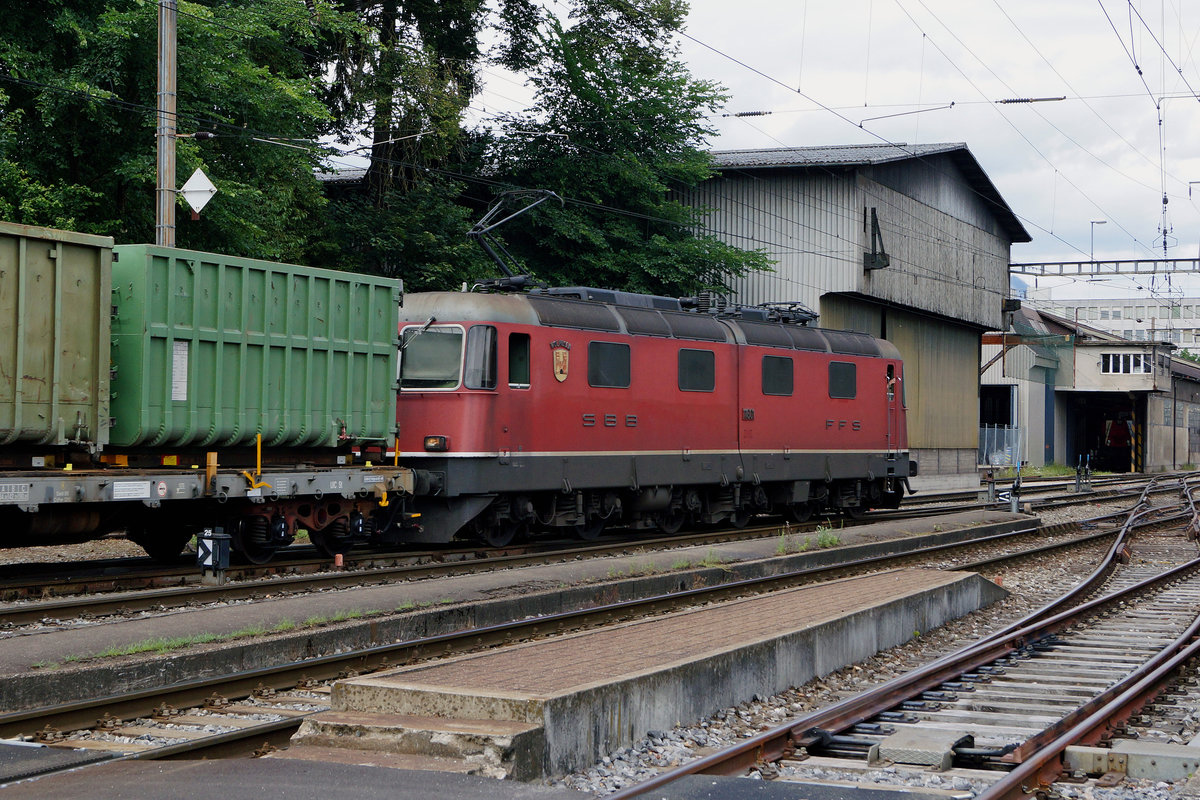 Re 6/6 11628 durchfährt den Bahnhof Pratteln. Die Aufnahme stammt vom 20.06.2016.