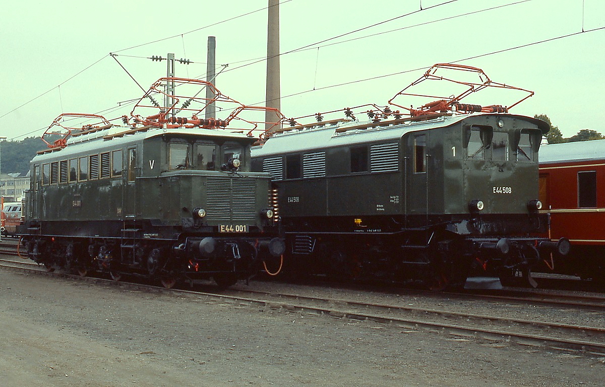Die E 44 001 und die für die Strecke von Freilassing nach Berchtesgaben gebaute E 44 508 waren auch auf der großen Ausstellung zum 150-jährigen Jubiläum der deutschen Eisenbahnen im Oktober 1985 in Bochum-Dahlhausen ausgestellt