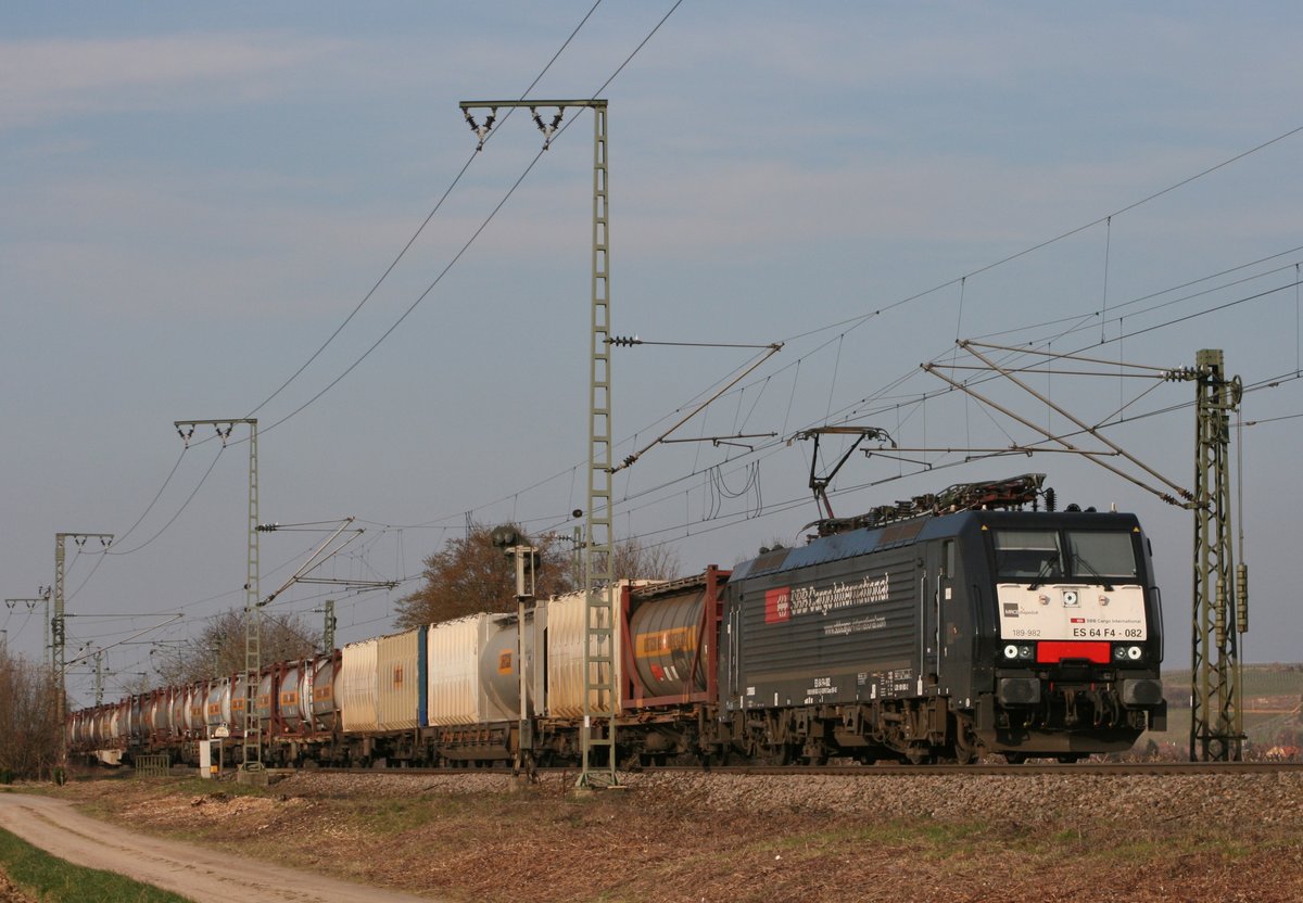 ES 64 F4-082 mit DGS 40201 (SBB, Rotterdam–Gallarate) am 16.03.2016 zwischen Buggingen und Müllheim (Baden)
