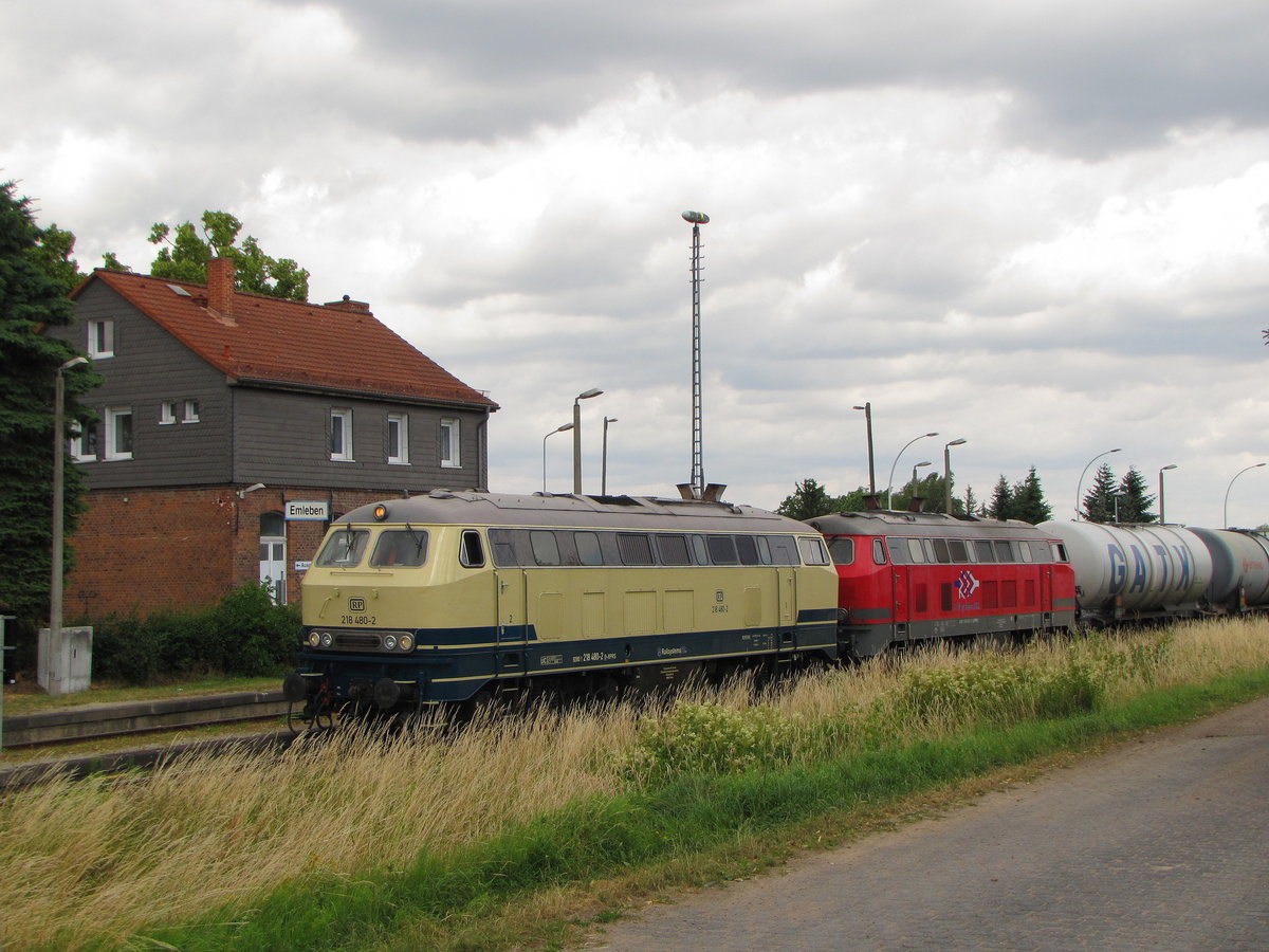 Railsystems RP 218 480-2 + 218 469-5 am 11.07.2016 mit einem Kesselwagenzug aus dem Tanklager in Emleben.