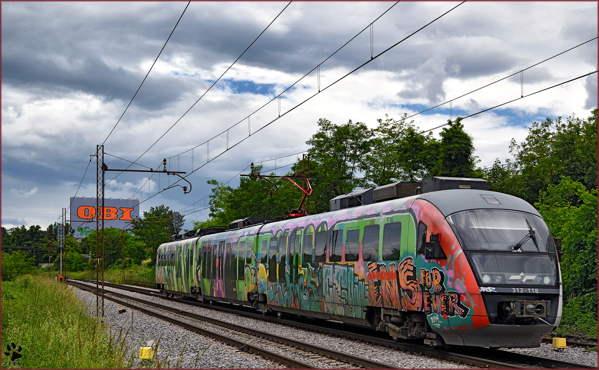 SŽ 312-118 fährt durch Maribor-Tabor Richtung Maribor HBF. /1.6.2016