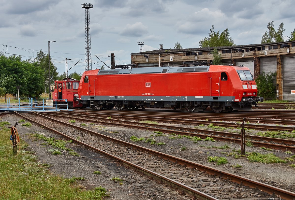 185 185-6 wird im Bw Engelsdorf auf ein Ruhegleis geschoben gesehen am 14.07.16.Abgelichtet wurde das Bild von einer öffentlichen Straße gemacht.Dieses Bild wurde von einem öffentlichen Bahnhof der hinter mir liegt gemacht dort gibt es auch einen öffentlichen Parkplatz.Das betreten der Lok Abstellfläche ist nicht gestattet.
