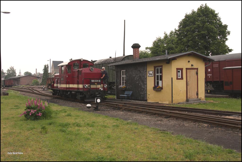 199031 rangiert am 25.05.2016 nach dem letzten Personenzug Einsatz im Bahnhof Mügeln.