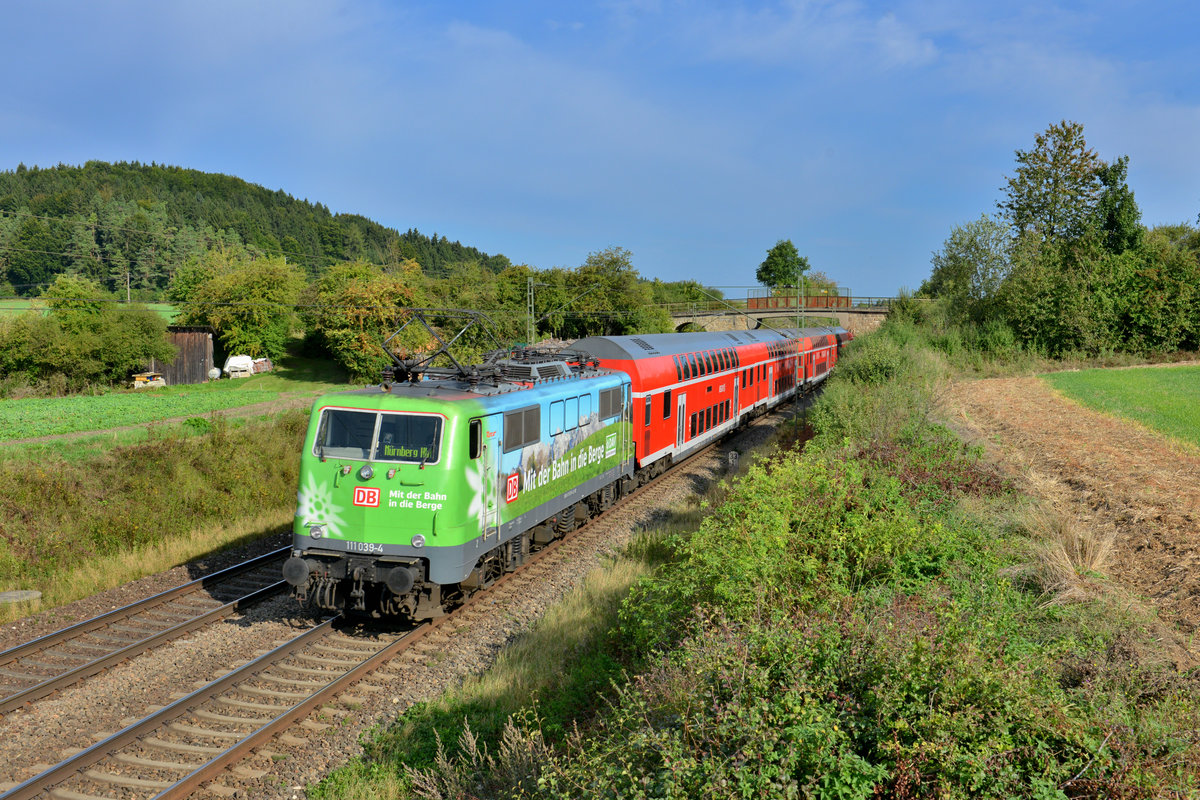 111 039 mit einem RE am 11.09.2012 bei Dettenhofen.